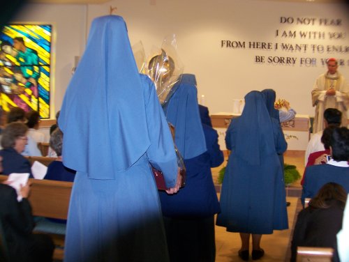 The gifts of bread are carried by Sr. Gioviana and Sr. Josephine